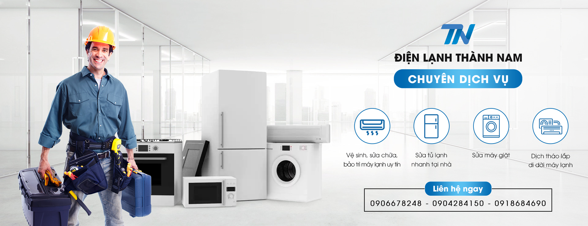 Điện lạnh Thành Nam là doanh nghiệp hàng đầu cung cấp dịch vụ sửa chữa - Vệ sinh - Bảo trì máy lạnh, máy giặt, tủ lạnh, lò vi sóng, ... uy tín, chất lượng tận nơi.